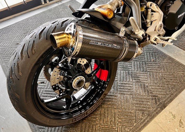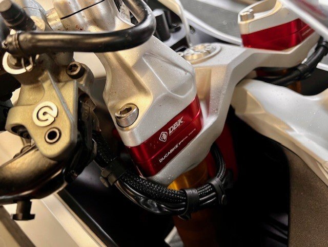 Accesories: Bar risers, frame protectors, good Michelins, Delkavic exhaust with original take-off. Brembo brakes and Ohlins front and rear suspension.